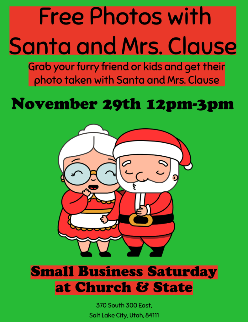 Santa and Mrs. Claus are coming to town! Celebrate Small Business Saturday at Church & State on Saturday, November 29th for a festive, dog-friendly holiday marketplace. From 11:00 a.m. to 4:00 p.m., guests can explore a vibrant local vendor market, enjoy live music, and experience the joy of supporting small businesses in the community – all with free admission.