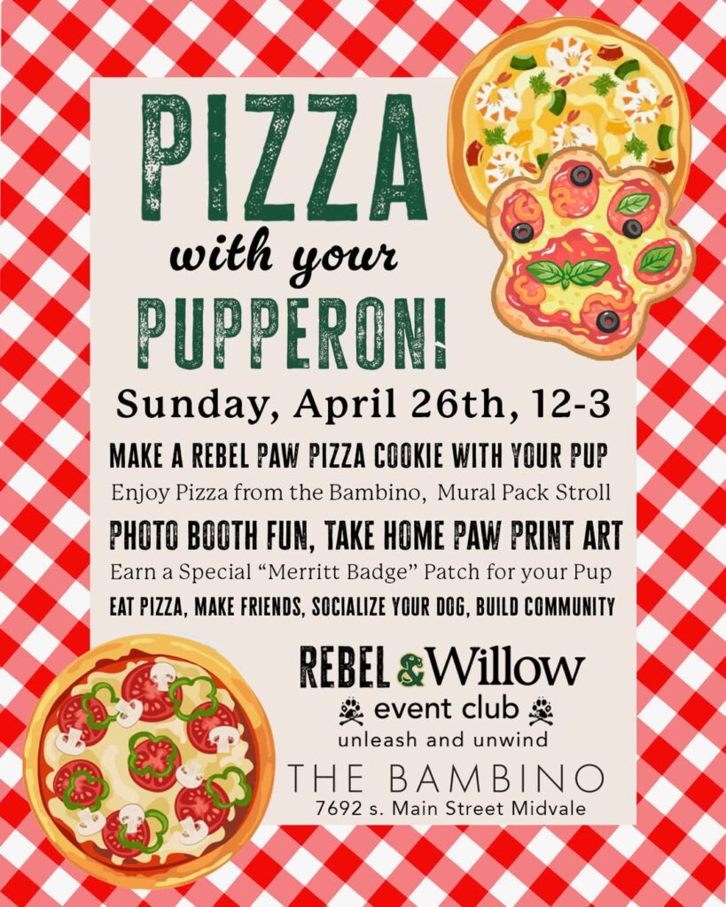 Build a pizza for your pup while you enjoy a slice of your own from The Bambino! Join Rebel & Willow Event Club for a fun afternoon of good dogs, good people, and good food. We’ll wrap up with a pack walk up Midvale Main Street to take in all of the incredible murals followed by a paw print art project at Rebel Paw. 🍕🐾
